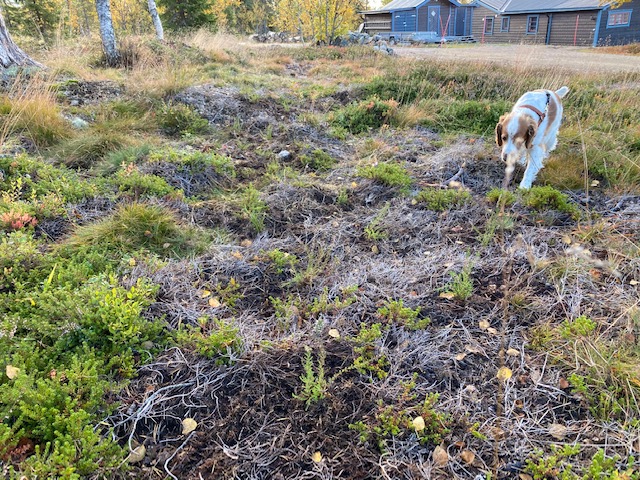 Nu grönskar det i Herrängen och Helén arbetar med en förändring av trädgården och föryngring. Ett tidigare körsbärsträd som kämpat i många år fick till slut ge vika för ett nytt träd – rödvinbärsträd (ingen buske). Sedan tidigare har vi tagit bort den andra av två ekar som hindrade många av de andra växterna att komma fram, kanske därför det tidigare körsbärsträdet inte lyckades.