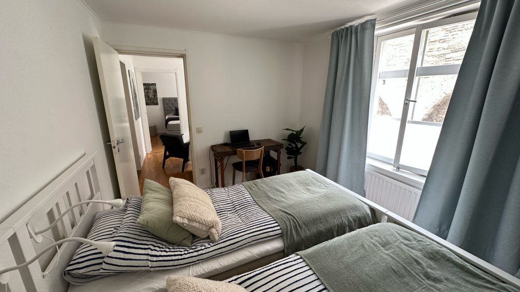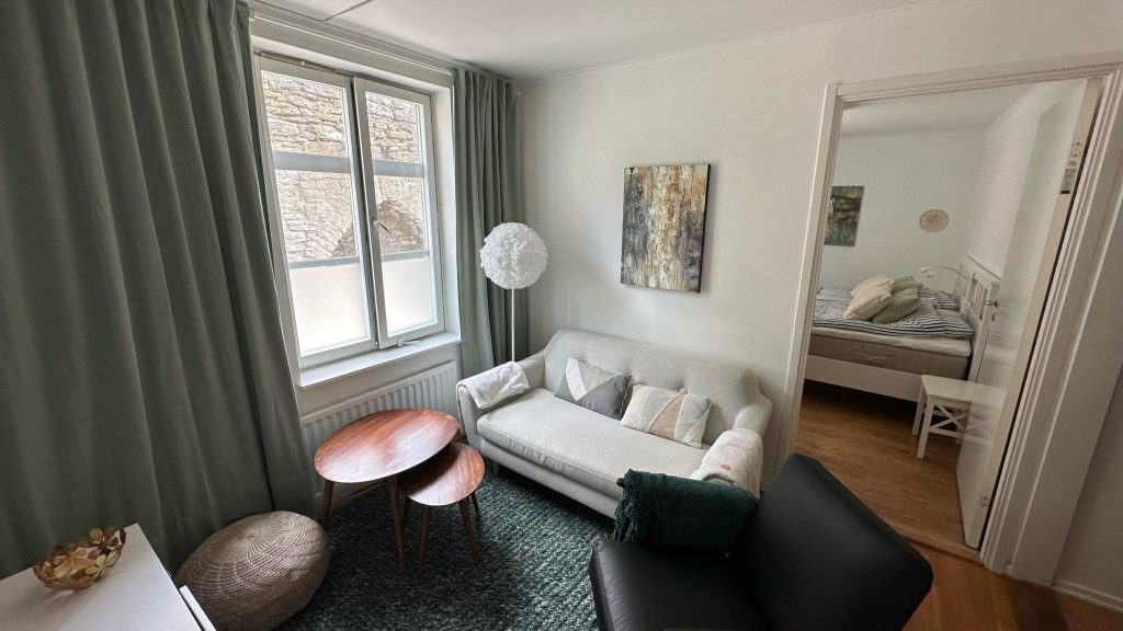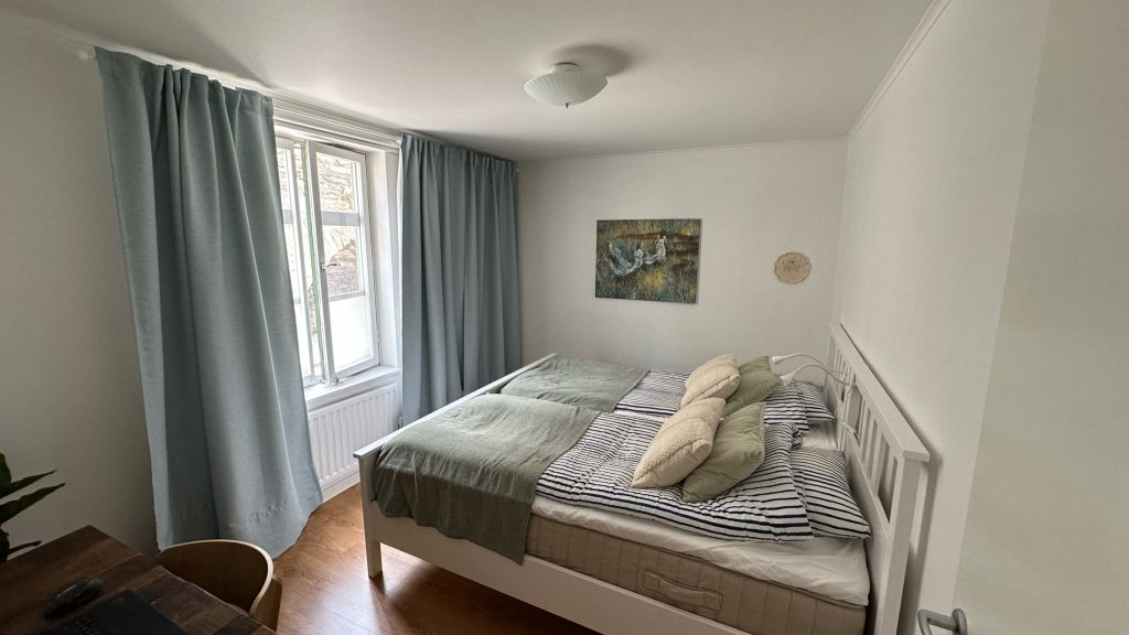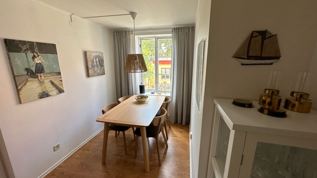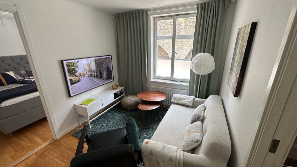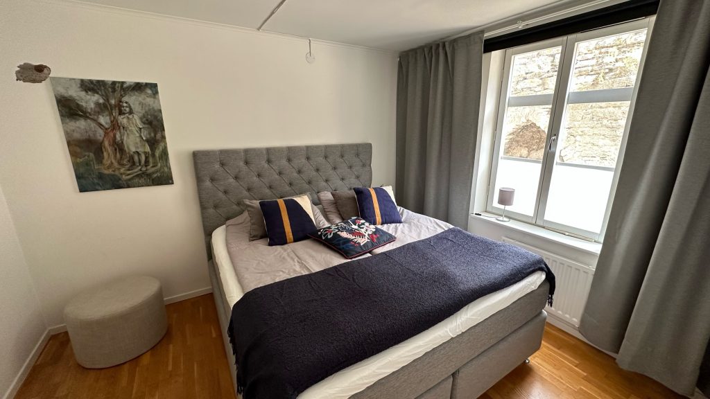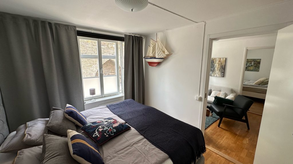 Lägenheten finns på Södra Murgatan 45ADen ligger precis innanför SkolportenKikar man ut från något av sovrummen eller det lilla vardagsrummet så ser man denna vyEtt av de två sovrummen har två 90-sängar. Det finns en mindre arbetsplats med extern skärm. Garderob för förvaring av kläder.Alla tre rummen har fönster mot murenEtt litet vardagsrum med liten soffa, fotölj och bordInternet med 100Mbit och WiFi. Samsung Smart teve med Apple TVMaster bedroom med skön 180 säng. Det finns byra och garderob med förvaringSegelfartyg med riktning mot havetKök med sitt plats för sex personer, extra iläggsskiva och extra stolar finnsKöket är bra utrustat (diskmaskin finns inte på plats ännu)Badrum mot gården med dusch. Plats finns för tvättmaskin som kommer installeras.